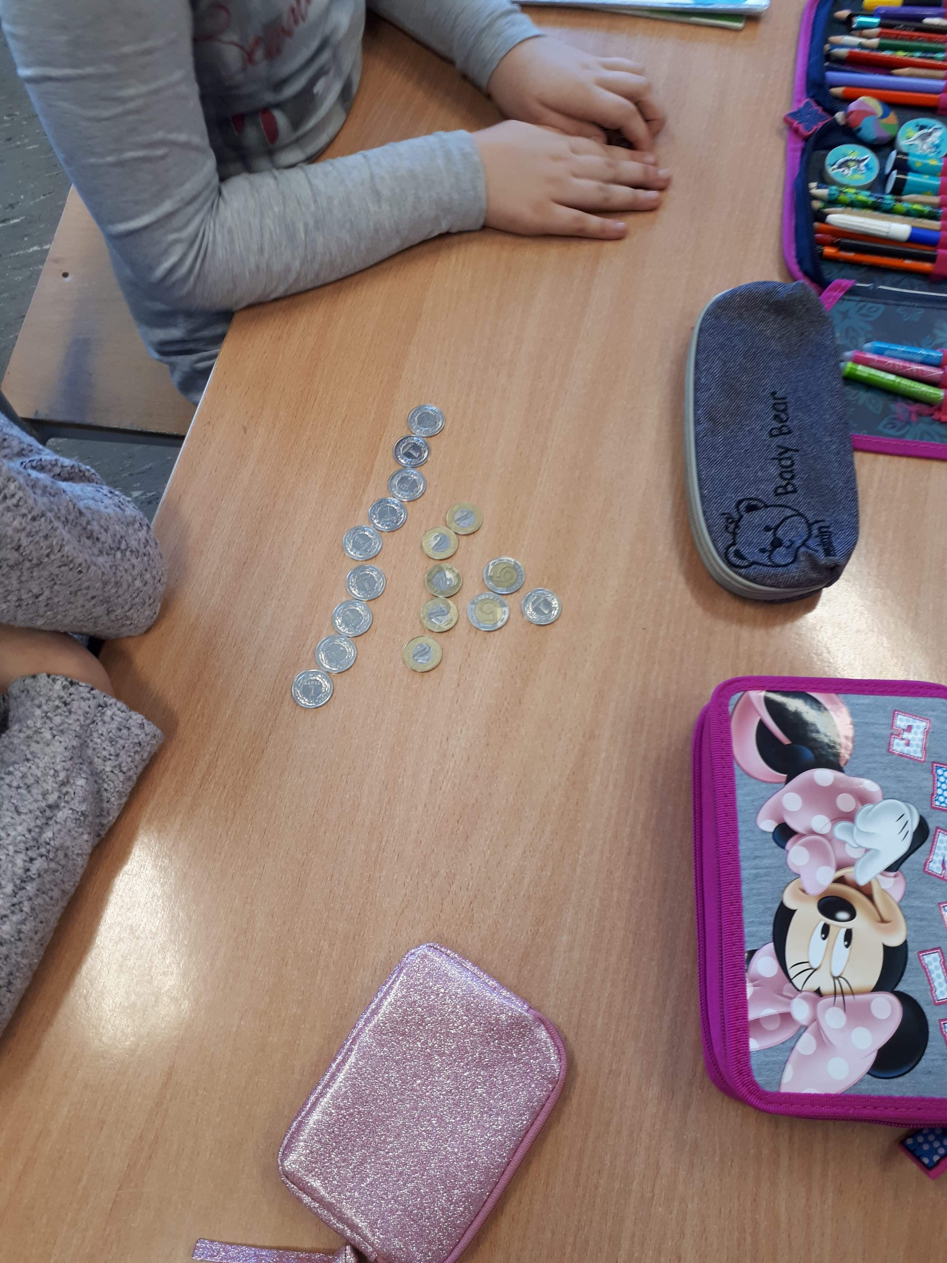 Pieniądze, pieniadze... wzbudzają emocje u dorosłych i u dzieci. Uczniowie z klasy Ib uczyli się rozmieniać pieniadze, bawili się w sklep i dokonywali obliczeń pieniężnych na prawdziwych monetach. Od razu nauka szła im lepiej Wykorzystaliśmy nawet starą zabawę z odbijaniem monet ołówkiem i było wielkie WOW.